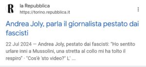 Repubblica è quel giornale che quando succede un fatto estemporaneo, che convolge ragazzi di destra, come quello di un giornalista che viene spintonato a terra e a 0 giorni di proniosi, ( praticamente un’iniziativa di singoli sfuggita di mano) parla di pestaggio.